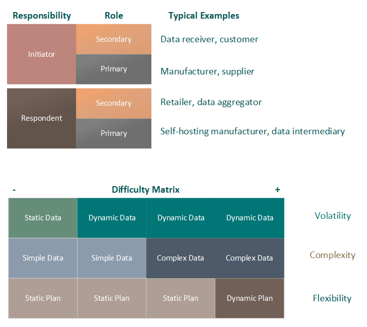 One actor, known as the Initiator, connects to the other, known as the Respondent. At this point, neither actor is technically primary or secondary – that relationship will be established later, when the two actors decide the course of action they’ll be taking. A given actor could receive data for one set of product information, or send data for another; this is dictated by the plan, which will be agreed to in the negotiation.